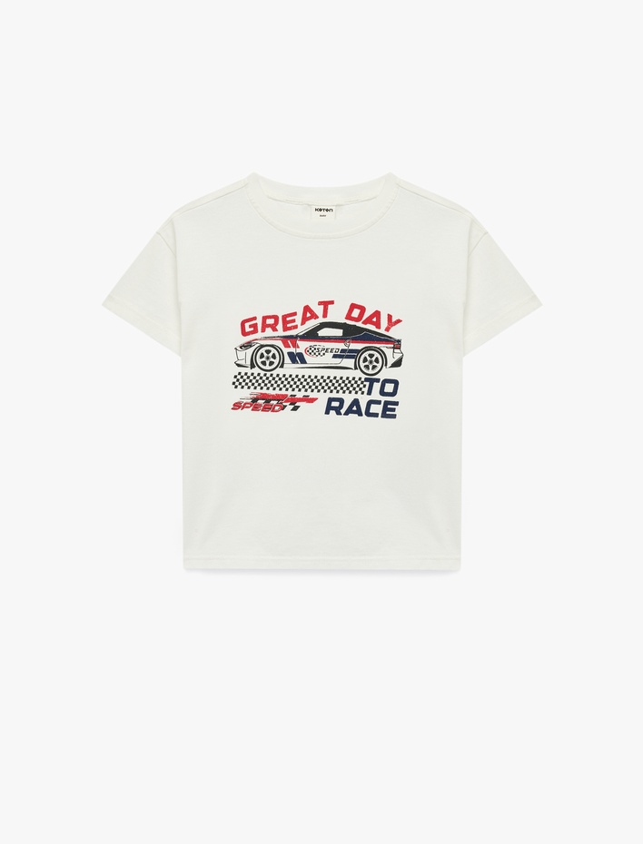Araba Baskılı Kısa Kollu Bisiklet Yaka Pamuklu Tişört Sepete Ekle
