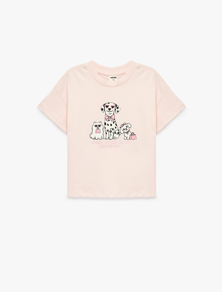 Pamuklu Kısa Kollu Bisiklet Yaka Kalpli Baskılı Tişört Sepete Ekle