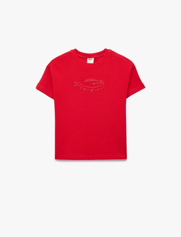 Kısa Kollu Bisiklet Yaka Baskılı Pamuklu Tişört Sepete Ekle