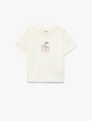 Pamuklu Kısa Kollu Bisiklet Yaka Tavşan Baskılı Tişört Sepete Ekle