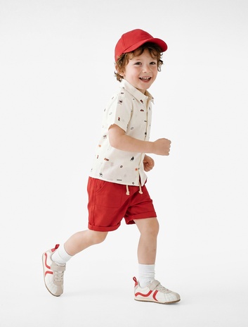 Erkek Bebek Pamuklu Kısa Kollu Klasik Yaka Desenli Gömlek