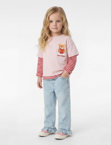Kız Bebek Uzun Kollu Bisiklet Yaka Dokulu Sweatshirt
