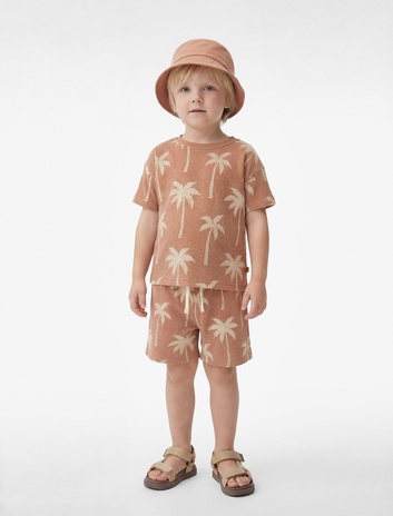 Erkek Bebek Kısa Kollu Bisiklet Yaka Palmiye Baskılı Pamuklu Oversize Tişört