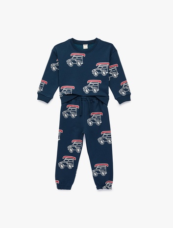 Araba Baskılı Pamuklu Eşofman Takımı -  2'li Set Sepete Ekle
