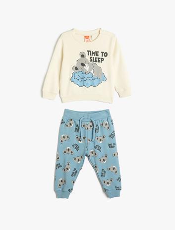 Pamuklu Pijama Takımı Koalalı Uzun Kollu Tişört ve Beli Lastikli Pijama Altı 2 Parça Sepete Ekle
