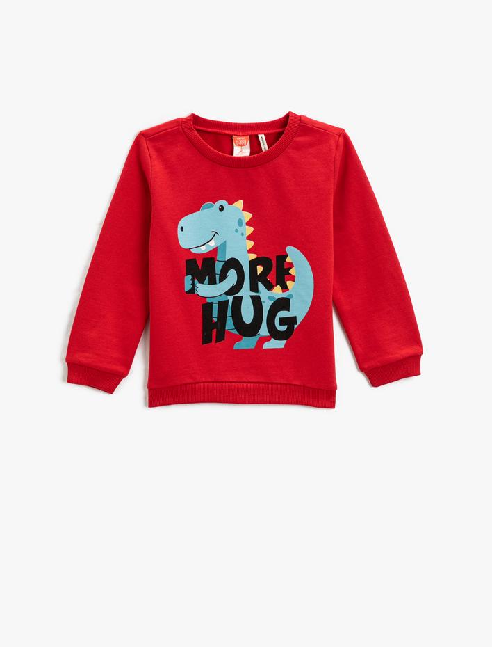 Dinozor Baskılı Sweatshirt Uzun Kollu Bisiklet Yaka Sepete Ekle