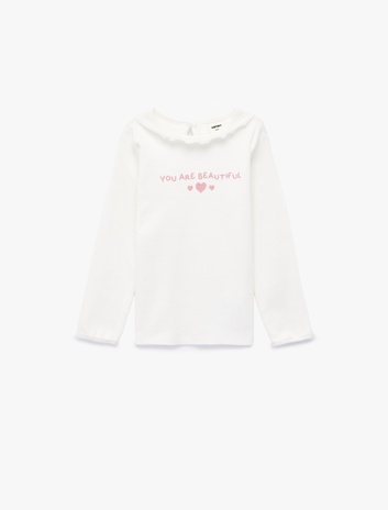 Pamuklu Nakış Detaylı Bebe Yaka Uzun Kollu Tişört Sepete Ekle