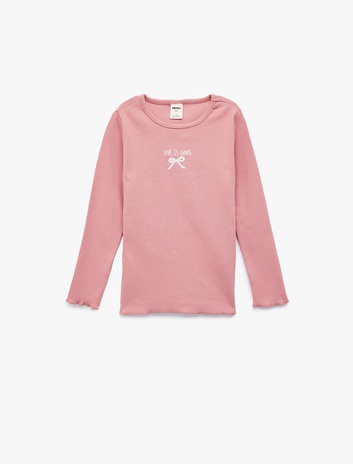 Pamuklu Fırfır Detaylı Uzun Kollu Bisiklet Yaka Tişört Sepete Ekle