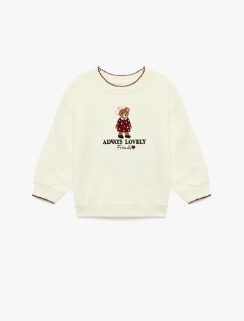 Ayıcık Nakışlı Uzun Kollu Bisiklet Yaka Pamuklu Sweatshirt Sepete Ekle