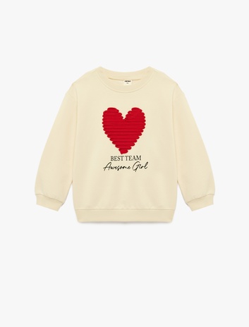 Şardonlu Uzun Kollu Kalp Detaylı Bisiklet Yaka Pamuklu Sweatshirt Sepete Ekle