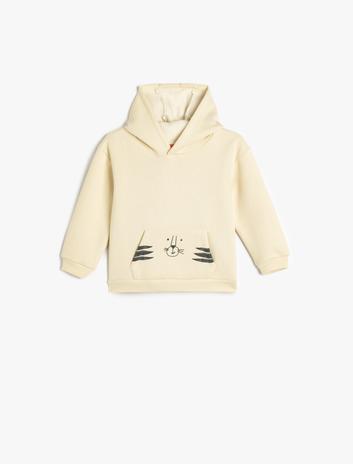 Erkek Bebek Kanguru Cepli Kapüşonlu Baskılı Şardonlu Sweatshirt