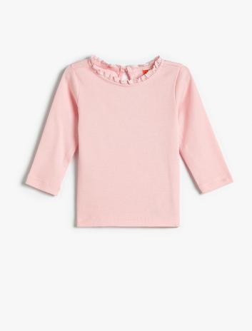 Kız Bebek Tişört Uzun Kollu Yuvarlak Yaka Fırfır Detaylı Kaşkorse Pamuklu