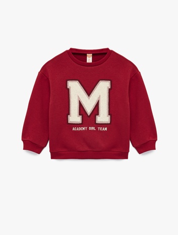 Nakışlı Uzun Kollu Bisiklet Yaka Pamuklu Sweatshirt Sepete Ekle