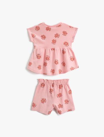 Kız Bebek Pamuklu Takım - Çiçekli Şort ve Kısa Kollu Tişört