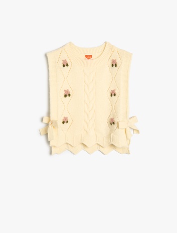 Kız Bebek Örgü Kazak Kolsuz Yanları Bağlamalı Bisiklet Yaka