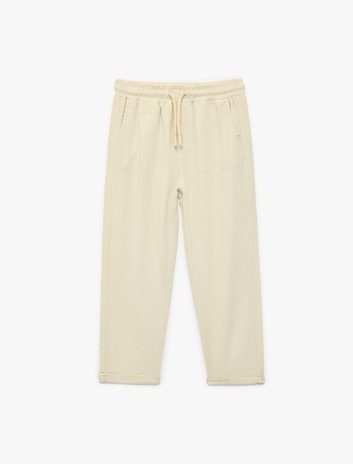 Erkek Bebek Keten ve Viskon Karışımlı Beli Bağlamalı Rahat Kesim Basic Pantolon