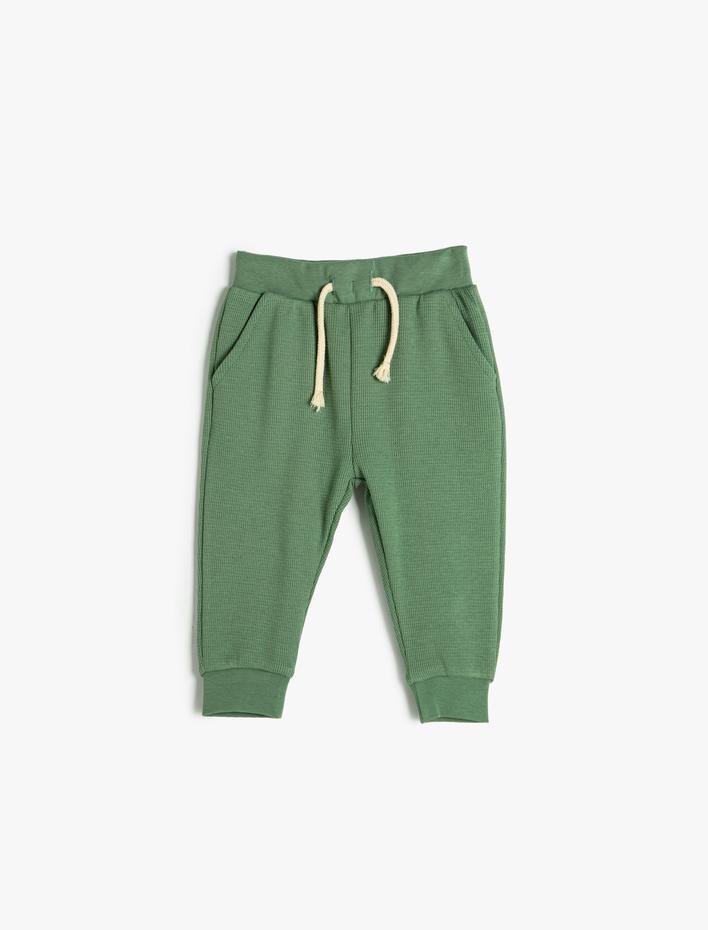 Erkek Bebek Jogger Eşofman Altı Şardonlu Beli Bağlamalı Baskı Detaylı Pamuklu