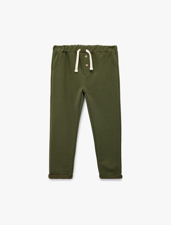 Erkek Bebek Düğme Detaylı Katlamalı Paça Beli Bağcıklı Eşofman Altı
