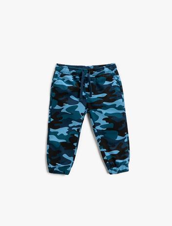 Erkek Bebek Jogger Pantolon Kamuflaj Desenli Beli Bağlamalı Cepli Pamuklu
