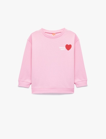 Uzun Kollu Bisiklet Yaka Kalp Baskılı Pamuklu Sweatshirt Sepete Ekle