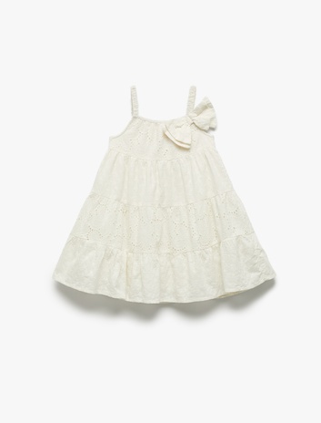 Fırfır Detaylı Pamuklu Brode Katmanlı Kare Yaka Askılı Elbise Sepete Ekle