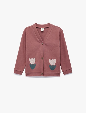 Kız Bebek Triko Hırka Düğmeli Yuvarlak Yaka