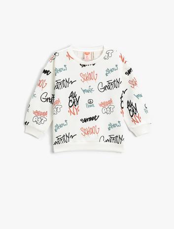 Baskılı Bisiklet Yaka Sweatshirt Sepete Ekle