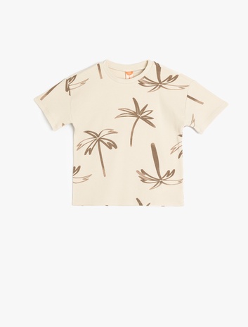 Erkek Bebek Tişört Kısa Kollu Palmiye Baskılı Bisiklet Yaka Dokulu Pamuklu