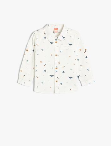 Erkek Bebek Gömlek Deniz Temalı Uzun Kollu Pamuklu
