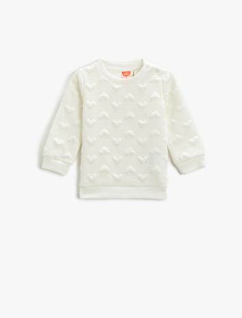 Kız Bebek Kalpli Kapitone Sweatshirt Uzun Kollu Bisiklet Yaka