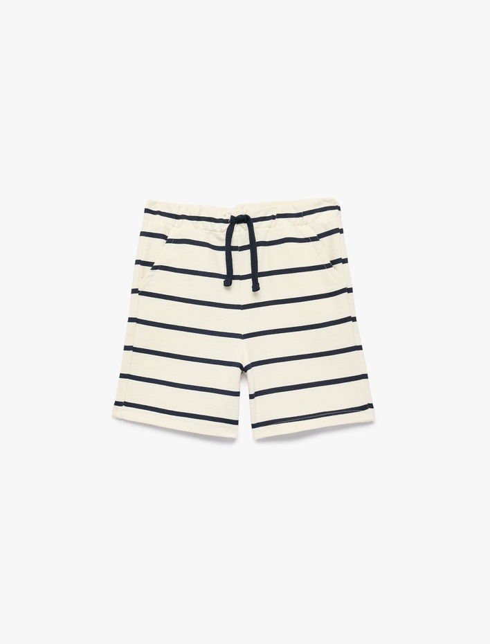 Beli Lastikli Cep Detaylı Pamuklu Çizgili Şort Sepete Ekle