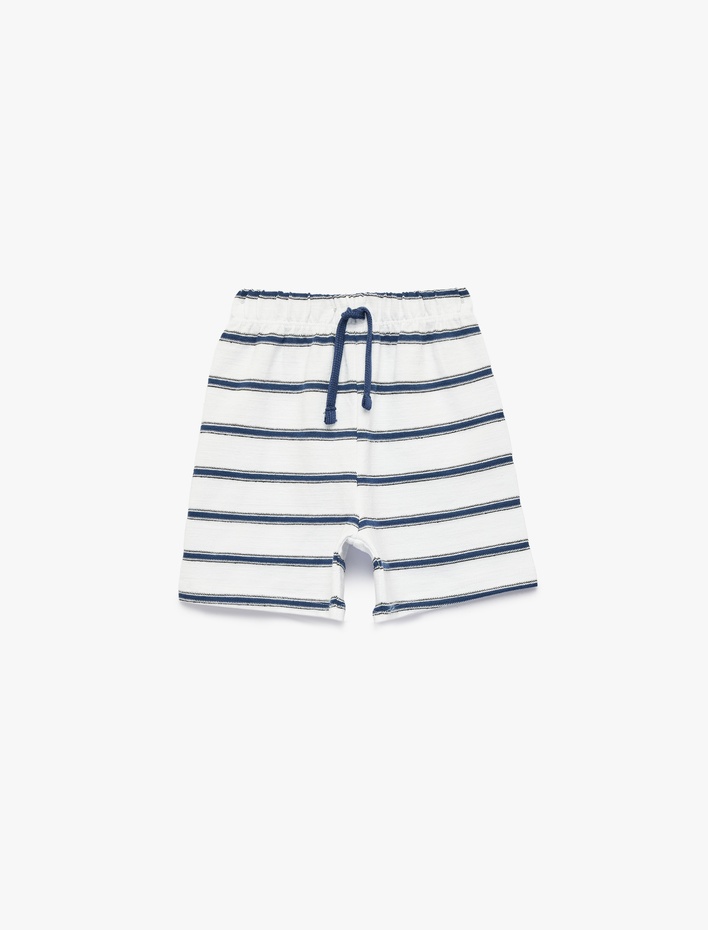 Beli Lastikli Pamuklu Çizgili Şort Sepete Ekle