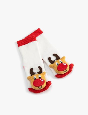 Kız Bebek Yılbaşı Temalı Hayvanlar Detaylı Pamuklu Havlu Çorap Seti