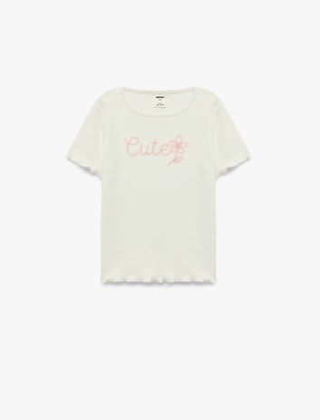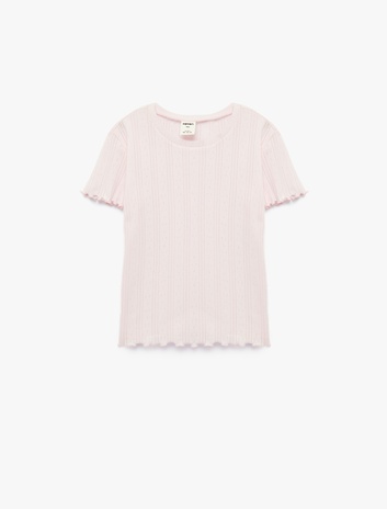Fırfır Detaylı Kısa Kollu Bisiklet Yaka Pamuklu Tişört Sepete Ekle