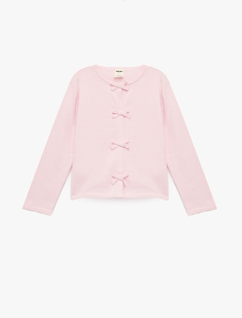 Uzun Kollu Bisiklet Yaka Fiyonklu Pamuklu Hırka Sepete Ekle