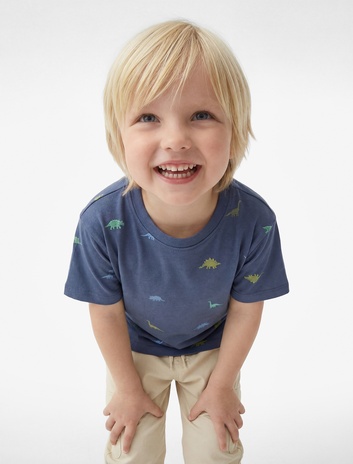 Erkek Bebek Pamuklu Bisiklet Yaka Kısa Kollu Dinozor Baskılı Tişört