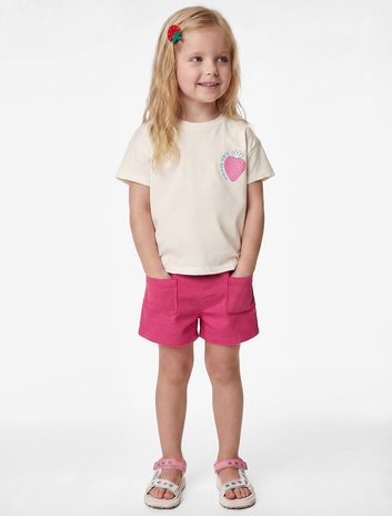Kız bebek yazlık tişört modelleri çiçek desenleriyle, fırfırlı kollarıyla ve rengarenk tasarımlarıyla yazın neşesini yansıtıyor. Genellikle kalp, kelebek ya da meyve baskıları gibi sevimli figürlerin yer aldığı kız bebek yazlık tişört modelleri şort eteklere, taytlara ya da tütü eteklere çok yakışıyor. Özellikle pembe, lila, sarı gibi canlı renklerin kullanıldığı tişörtler her ortama uyum sağlıyor ve her tarz parçayla rahatlıkla kullanılabiliyor. Birbirinden renkli ve sevimli yazlık tişört modelleri miniklerin de favori parçaları arasında yer alıyor.