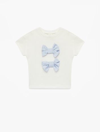 Pamuklu Fiyonk Aplike Detaylı Kısa Kollu Bisiklet Yaka Tişört Sepete Ekle