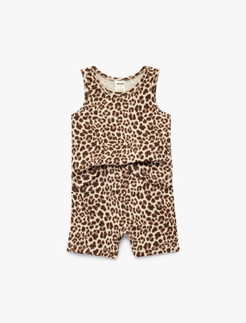 Leopar Desenli Ribanalı Bisiklet Yaka Pamuklu Tulum Sepete Ekle