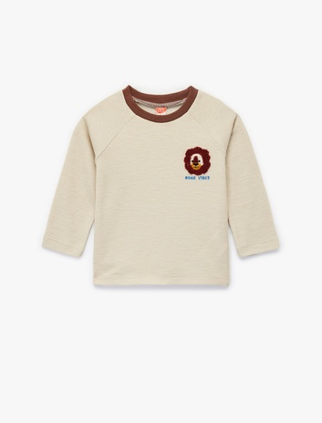 Uzun Kollu Bisiklet Yaka Aslan Nakışlı Pamuklu Tişört Sepete Ekle