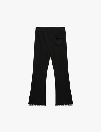 Kız Bebek Cep Detaylı Beli Bağcıklı Viskon Karışımlı Ribanalı Tayt