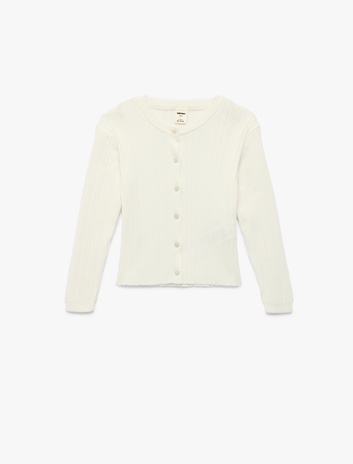 Kız Bebek Uzun Kollu Bisiklet Yaka Modal Karışımlı Dokulu Düğmeli Triko Hırka