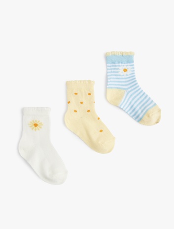 Çok Renkli Çiçekli 3'lü Çorap Sepete Ekle