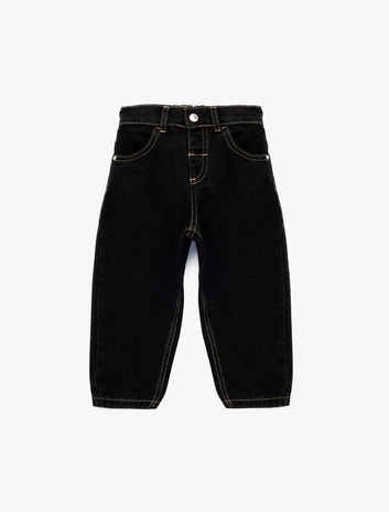 Pamuklu Beli Lastikli Düğmeli Relax Fit Denim Pantolon Sepete Ekle