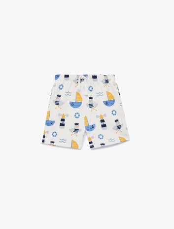 Pamuklu Beli Bağcıklı Baskılı Şort Sepete Ekle