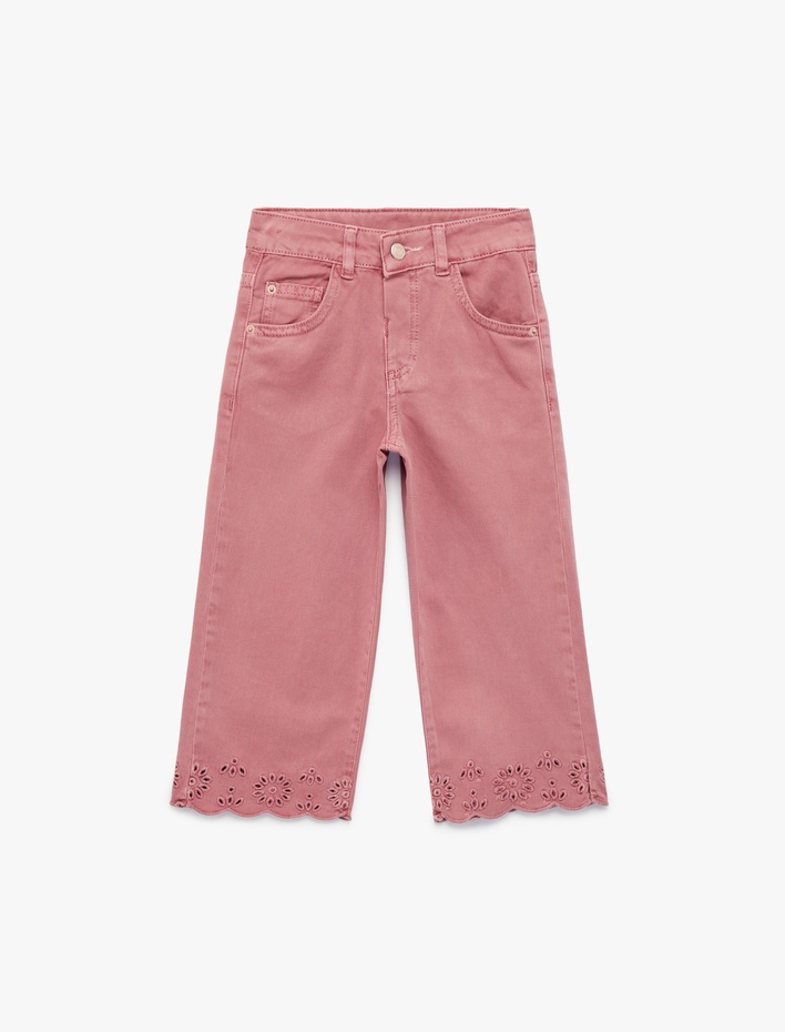 Pamuklu Cepli Dantel Detaylı Geniş Paça Pantolon Sepete Ekle