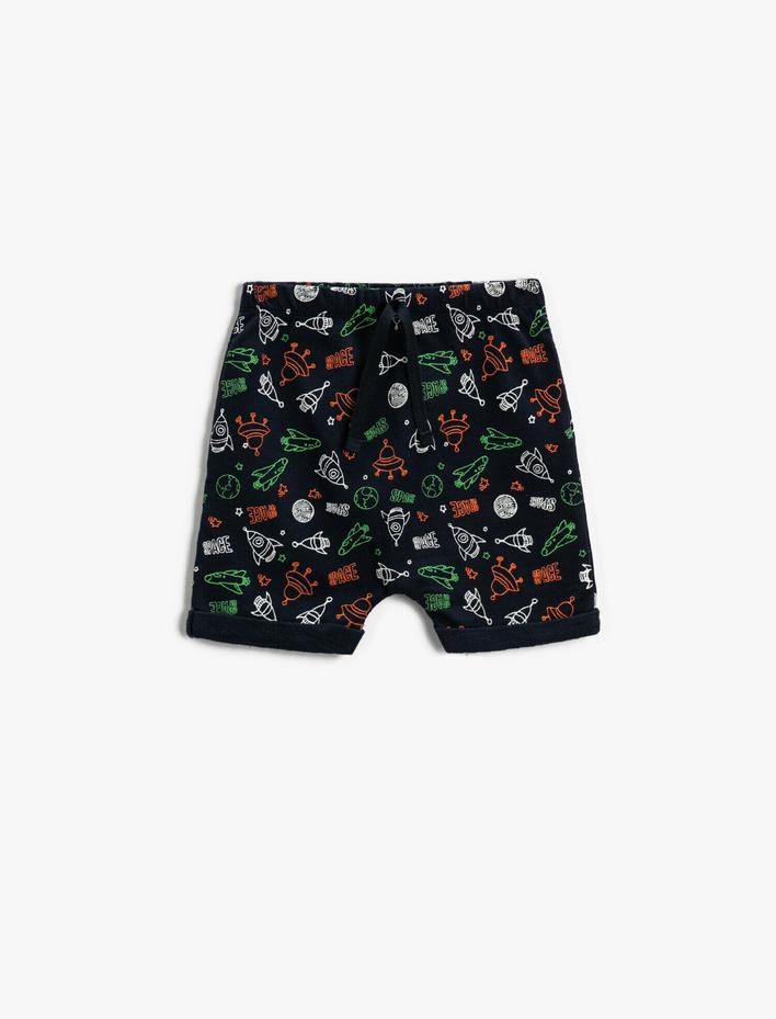 Erkek Bebek Uzay Temalı Baskılı Şort Pamuklu