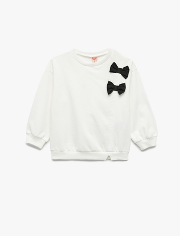 Şardonlu Uzun Kollu Bisiklet Yaka Fiyonklu Sweatshirt Sepete Ekle