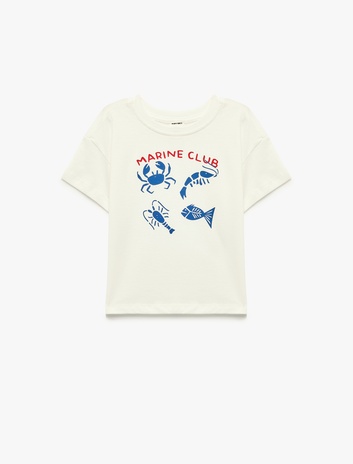Kısa Kollu Bisiklet Yaka Baskılı Pamuklu Tişört Sepete Ekle
