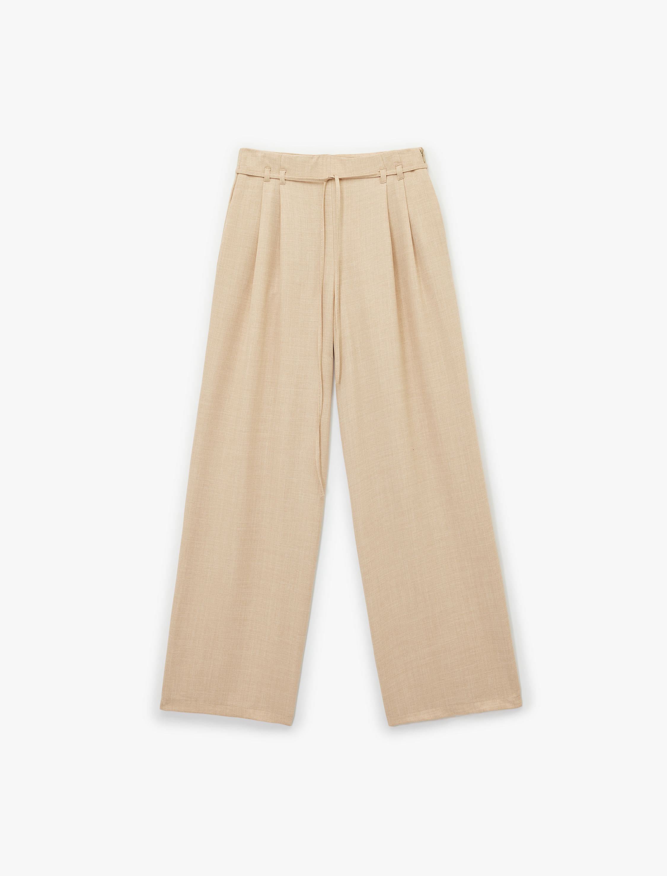 Beli Bağcıklı Pileli Düz Geniş Paça Palazzo Pantolon